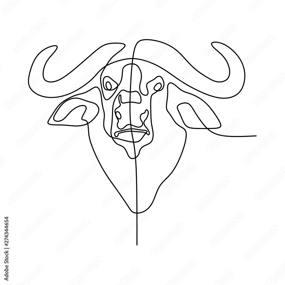 One Continuous Line Drawing Of Buffalo Head Stock Vector Adobe Stock